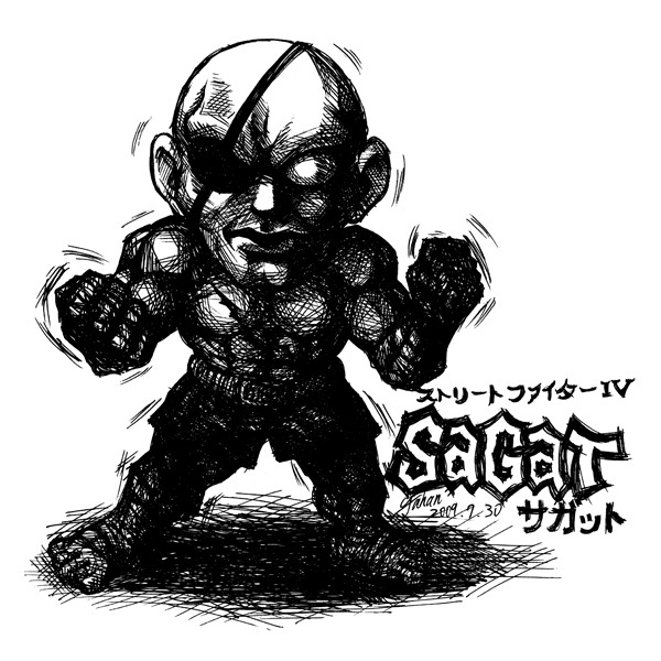 使用無印良品推出的黑色膠墨筆繪製的快打旋風系列角色─沙加特(Sagat),原本只是隨筆畫的塗鴉,有些部份的陰影一不小心畫過了頭,後來就乾脆給他黑到底,這樣應該會更有殺氣吧(笑)
